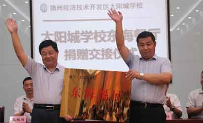 9月21日上午,东海集团为太阳城学校捐建的学生餐厅交接仪式在太阳城学校隆重举行。经济技术开发区党工委委员、管委会副主任王怀勇,东海集团总经理魏建民等领导和开发区有关部门负责人、学校部分师生参加仪式,并进行了“东海餐厅”牌匾交接仪式。