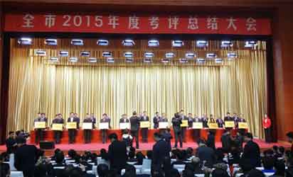 2月14日,春节后首个工作日,德州市隆重召开2015年度考评总结大会,对2015年的工作进行考评总结,对先进单位和个人予以通报表彰。从会上传来喜讯:山东东海房地产开发有限公司荣获2015年度全市依法纳税先进企业。德州市委书记陈勇,市委副书记、市长陈飞等市领导为获奖单位和个人颁奖。