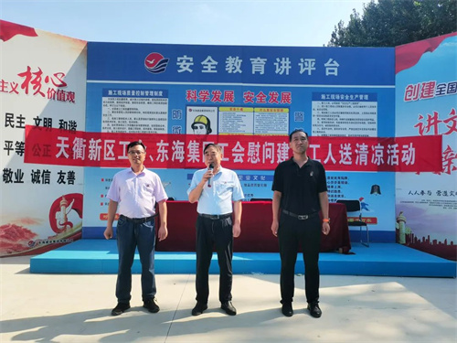 近日,高温天气持续不退,但东海集团各项目建设工地一线工人们,依旧坚持奋战在各自岗位上,正在备受“烤”验。高温酷暑也牵动着各级工会领导的心,8月17日、18日,天衢新区工会、德州市建设工会和德州市建筑业发展促进中心分别联合东海集团工会开展“夏送清凉、情系职工”慰问活动,为酷暑中坚守岗位的一线工人们送去深深关爱和丝丝凉爽。