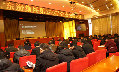 3月2日上午,东海集团总部机关组织召开“学习贯彻落实董事长工作报告精神专题会议”。会上,首先由集团党委书记苏振水结合总部机关实际,宣讲报告精神,总结点评机关各部门2018年工作情况,并围绕如何落实董事长报告、做好2019年工作提出了要求。随后,企业文化、人力资源、法律事务、资产运营管理等各部门负责人交流了学习体会,简要回顾总结了2018年工作情况,畅谈了做好2019年工作的措施和决心。大家纷纷表示,总部机关要走在学习落实前列,努力做好本职工作,为实现东海集团2019年发展目标提供坚强有力的服务保障。