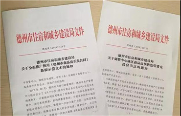 会议印发了《关于全面推广使用<德州市商品房买卖合同>新版示范文本的通知》和《关于调整中心城区商品房预售监管资金拨付节点的通知》,发布了新版《德州市商品房买卖合同》示范文本。