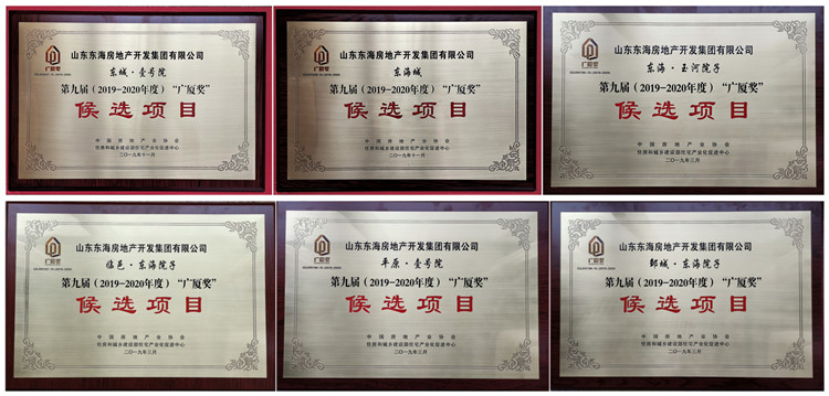 2019年1月27日至28日,东海集团一行23人,组织邹城·东海院子、平原·壹号院、临邑·东海院子、东海·玉河院子四个住宅项目,赴国家住房和城乡建设部参加国家AAA级住宅性能认定预审和“广厦奖”候选项目初审。4月11日,在公布的第九届(2019-2020年度)中国房地产“广厦奖”第一批候选项目名单中,这四个项目全部入选。东海集团成为山东省唯一有入选项目的房地产企业。
