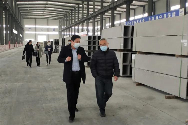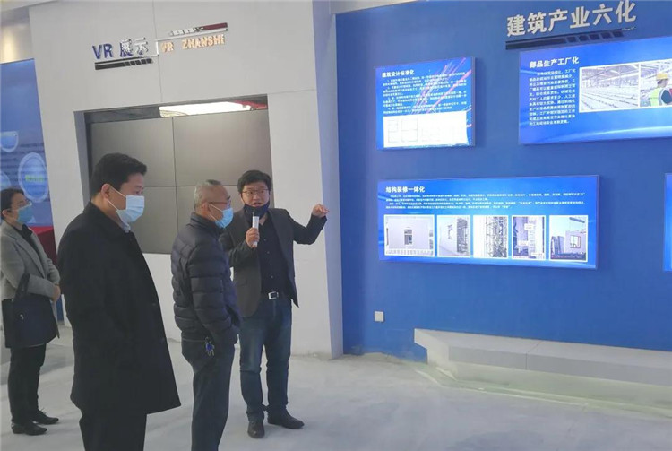 王殿凯一行首先参观考察了生产车间,对三东筑工装配式建筑施工实现的预制构件设计标准化、生产工厂化、运输物流化以及安装专业化给予高度赞赏,对所取得成绩给予高度评价。