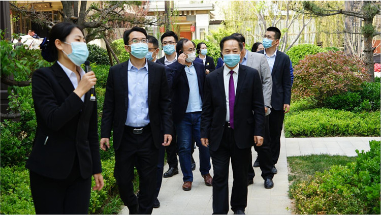 座谈结束后,薛磊一行先后参观考察了集团党员活动室和德州壹号院、东海香港城两个交付入住项目及在建的国风上院项目。通过座谈交流和实地考察,来宾们对东海集团高度重视党建工作、以党建促发展的做法给予高度赞赏,对东海集团的发展成就和项目品质以及周到、细致、高标准的物业服务给予高度评价。