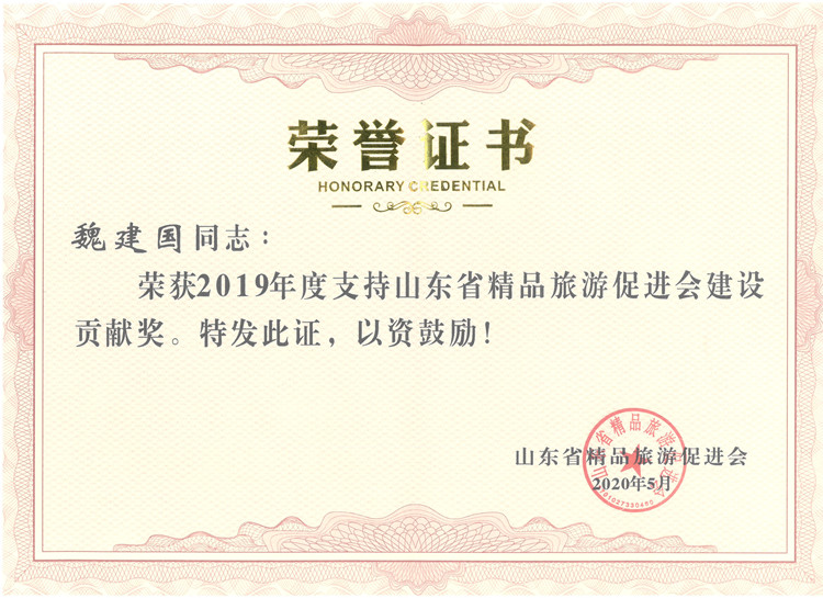 东海天下温泉康养小镇项目荣获“山东省精品旅游先进单位”荣誉,董事长魏建国获得“支持旅促会建设贡献奖”,东海天下温泉康养小镇项目总经理刘光绪获得“山东省精品旅游先进个人”称号。