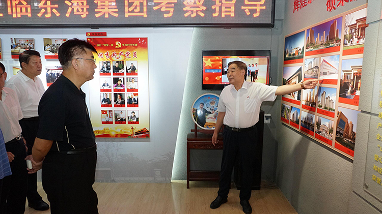许立全一行先后参观了东海集团企业文化展厅和党员活动室,并观看了党建宣传片。
