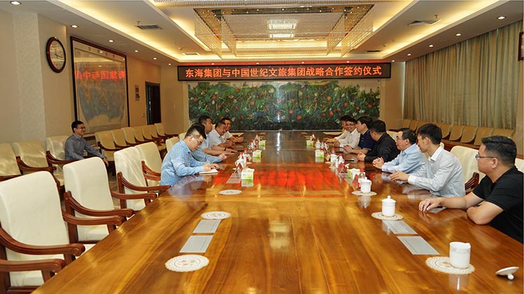 签约仪式前,双方举行了座谈会。在轻松愉快的气氛中,魏建民首先致辞,他在简要介绍东海集团情况后表示,东海集团非常珍惜本次合作,此次签约,标志着东海集团与中国世纪文旅集团合作的开始。今后我们将以此为起点,按照优势互补的原则,探讨多层次、多角度与中国世纪文旅集团的长期战略合作,努力达到双赢。