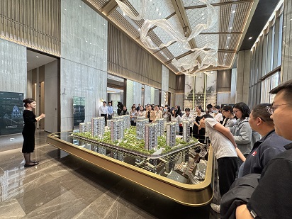 考察团在美好生活规划师陪同下开启沉浸式体验,先后参观了业主服务中心、景观示范区、精装样板间等核心区域,详细了解东海国际的前瞻性设计、智能化应用、精细化管理、标准化物业服务等工作亮点,并与项目负责人深入探讨交流。