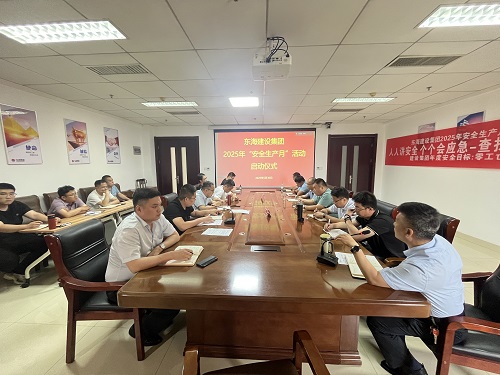 5月30日下午,东海建设集团在总部1416会议室举行2025年“安全生产月”启动仪式。集团领导班子、各分公司负责人及项目部主要管理人员通过线上线下方式参会,共同拉开为期一个月的安全生产专项活动序幕。