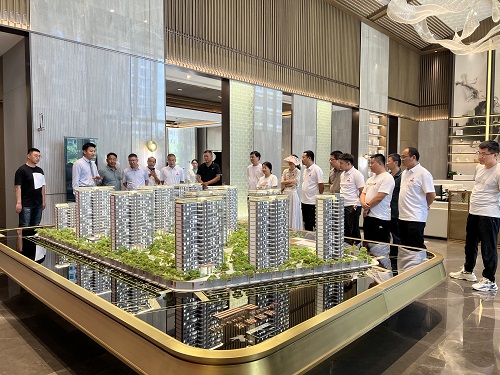 考察团一行先后参观了项目景观示范区、精装样板间、艺术车库、业主服务中心等区域,对各区域的施工工艺与细节打造进行了全面细致的了解,并给予了高度评价。