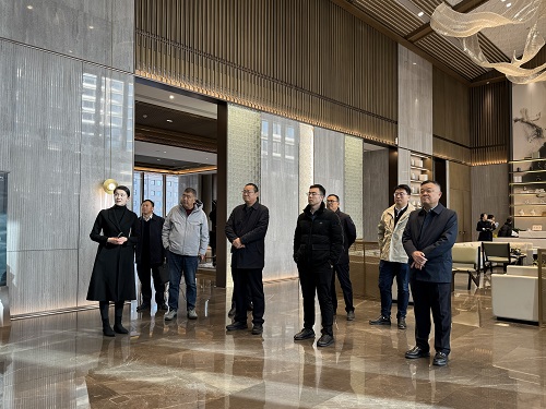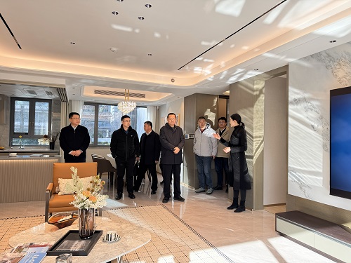 考察团一行先后参观了东海国际项目的景观示范区、精装样板间、艺术车库及超配式业主服务中心等核心功能区域。深入了解项目在规划定位、产品设计、用材标准、施工工艺及运维服务等方面的创新实践。