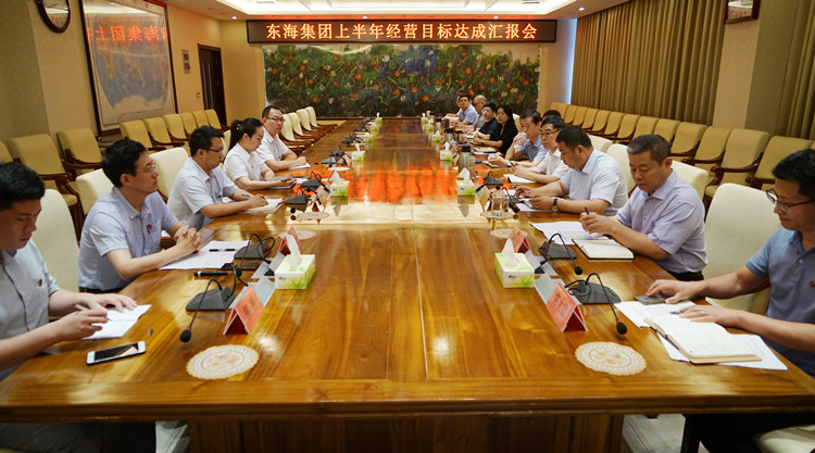 7月7日上午,东海集团召开2019年上半年经营目标达成汇报会,董事长魏建国等集团领导以及四大板块相关领导50余人参加,会议由总裁魏建民主持。会上,开发集团运营总监黄振奇、建设集团运营总监王延国、文旅集团总经理赵英旭、物业集团总经理蔡少武、集团总部人力资源部经理范建军分别就上半年经营目标完成情况作了专题汇报,魏建国董事长作重要讲话。