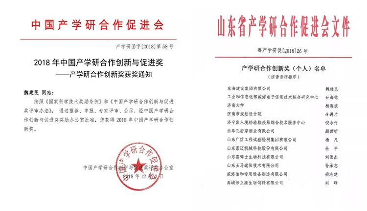 近日,中国产学研合作促进会发布通知,表彰“2018年中国产学研合作创新奖”获得者,东海集团总裁魏建民获得这一殊荣。