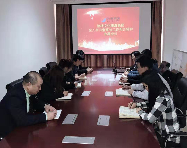 最后,文旅集团总经理赵英旭指出:董事长的报告气势恢宏、催人奋进,对文旅集团的工作提出了更高的要求,既是压力也是动力,2019年是东海集团的品质提升年,也是文旅集团的突破进展年,围绕敢想、敢干、敢担当,全力抓好“东海天下温泉康养小镇”项目实施,砥砺前行,共创辉煌!