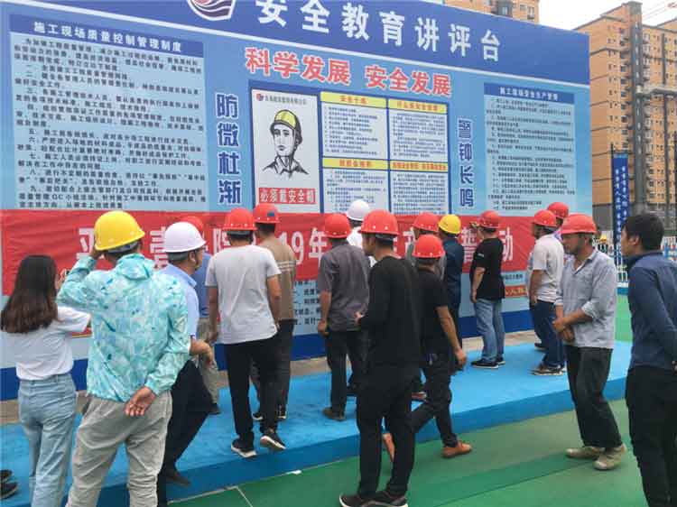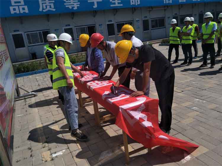 为认真贯彻国家有关部门及集团公司安全生产工作精神,大力推进项目东区南部安置社区B区安全生产工作,6月10日,大社区分公司一、二项目部在项目部宣讲区举行2019年项目东区南部安置社区B区“安全生产月”活动启动仪式。 启动仪式首先由一项目部项目经理王华德作动员讲话,二项目部项目经理李延军带领全体人员进行安全宣誓,并在“防风险 除隐患 遏事故”横幅上郑重签名,随后给现场劳务施工作业人员发放夏季安全生产“八防”宣传手册及防暑药品。 在安全生产月期间,大社区分公司通过一系列有效措施营造了浓厚的活动氛围,使全体职工充分认清安全生产工作的重要性,安全意识得到进一步提高,确保公司安全生产形势的稳定向好发展。 济南公司开展系列活动 把安全工作落到实处 根据《国务院安委会办公室关于开展2019年全国“安全生产月”和“安全生产万里行”活动的通知》要求,东海建设集团济南分公司计划在6月全面开展“安全生产月”活动,并详细制定了安全月活动方案。 6月3日济南公司组织召开“2019安全生产月启动会”,济南公司总经理宋亚华在会上作重要讲话,强调了本次安全月“防风险、除隐患、遏事故”的主题思想,并要求济南公司各项目部根据实际情况积极开展安全生产活动,通过开展安全知识宣讲、应急演练、派发宣传单页、悬挂海报条幅、安全知识有奖竞赛等一系列活动,形成了“人人参与、全面安全”的局面,使安全生产的观念更加的深入人心,确保风险可控,减少隐患,排除事故,让广大务工人员懂安全、知风险、防事故。