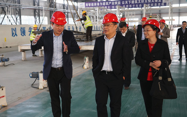 在三东筑工,沈沉实地参观了装配式建筑生产车间,详细了解了预制构件模板制作生产全过程,他对东海集团高瞻远瞩发展装配式建筑的战略眼光高度赞扬。