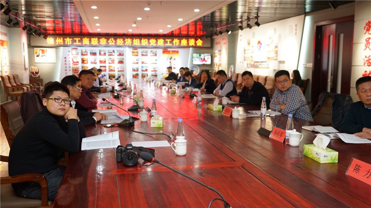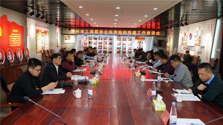 观摩结束后,随即在东海集团党员活动室召开了德州市非公经济组织党建工作座谈会。会上,东海集团、德建集团、永盛斋扒鸡集团、恒丰集团和平原县恩城镇商会、天翔楼宇商会等6家单位党组织负责人作了典型交流发言。