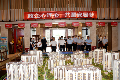 为落实“六稳”“六保”要求,坚持因城施策、分类指导,帮助企业纾难解困,着力推进德州市房地产市场平稳健康发展,6月4日上午,市住房城乡建设局开展了“政企心连心 共圆安居梦”商品住房促销活动。德州市住房和城乡建设局党组书记、局长李希岩一行5人来东海集团进行调研指导,东海集团董事长魏建国、总裁魏建民陪同调研。