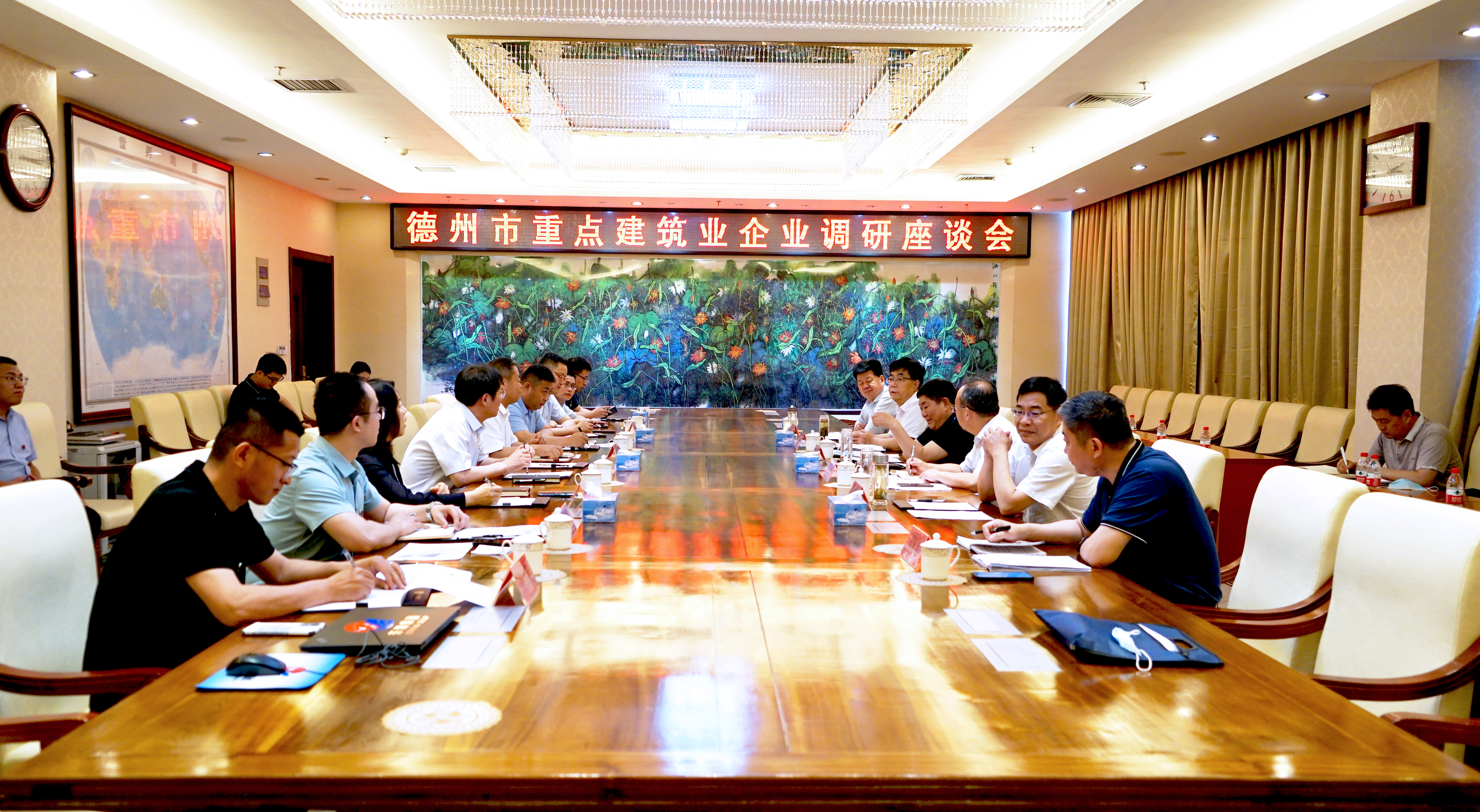 6月5日下午,德州市委常委、副市长樊廷雷带队到东海集团调研,主要了解市级重点建筑企业发展情况,听取企业发展中的困难问题和意见建议。市政府副秘书长郑玉宽,市住建局党组书记、局长李希岩,市自然资源局党组书记、局长杨洪利,经济技术开发区党工委委员、管委会副主任史好勤等有关单位负责人参加。东海集团董事长魏建国、总裁魏建民等领导陪同调研。