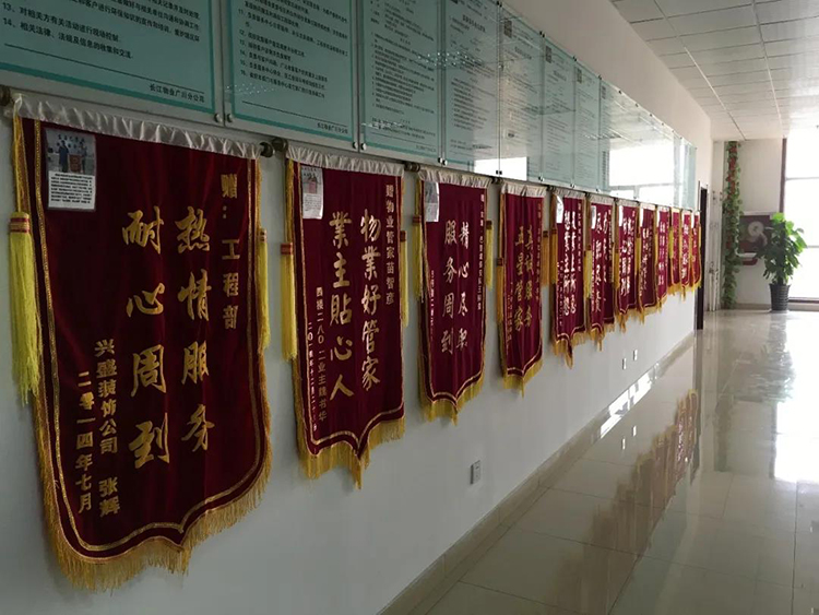 像这样的事情不胜枚举,渐渐地组成了现在锦旗墙上挂着的近300多面锦旗。每一面锦旗背后都隐藏着一个长江物业与业主之间真挚的感人故事,这也解释了为什么一个服务于四线城市的物业公司能够获得“2020年中国物业服务百强企业”的殊荣。