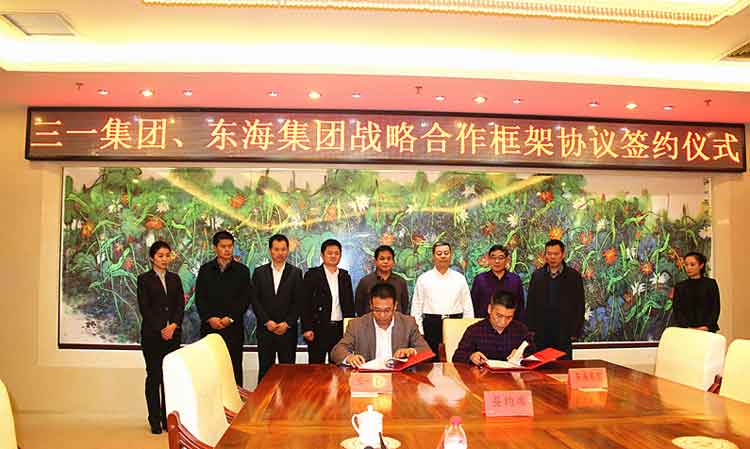 根据双方产业发展及市场拓展规划,三一集团和东海集团建立战略合作伙伴关系,将通过资源共享、业务互利、共同投资和管理创新等方式,促进双方优势互补、密切合作。东海建设集团充分发挥自身在工程建设、房地产开发、旅游地产开发方面的优势,三一集团充分发挥自身在机械制造、科技研发、新能源装备、风电建设、装配式建筑技术研发等领域专业技术优势、成本把控能力及国际市场影响力,共同推进市场开拓、产业研究及项目工程实施等有关工作。双方将以PC装配式房屋建筑为切入点,加强在建筑工程领域的合作,主要包括:建筑机械设备采购、建筑工程总承包、组建装配式房屋施工总承包体、试点工程建设等各个方面,推动德州市发展为装配式建筑示范城市。双方还将合作开拓境外基础设施建设及工程承包业务,同时,双方还将在风电建设领域开展充分协同合作,在三一重能自主导的风电领域开发建设中,优先选择东海集团作为合作伙伴,优先打造“旅游地产+风电场开发”德州模式。 合作洽谈签约仪式前,三一集团客人一行,在集团党委书记苏振水、渤海新区总裁姜立陪同下,还参观了东海集团巴黎城、香港城等开发建设项目,对东海集团的开发建设能力及实力和项目品质,都给予了高度评价。