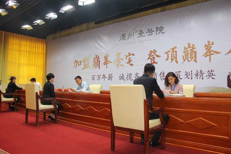 德州壹号院以德州首席中式文化豪宅之姿磅礴问世,而此次招聘会作为德州壹号院问世以来首次大型活动,其气势与内涵更是毋庸赘言。一对一海选初试,让不少应聘者用第一印象就将面试官征服;营销团队复试,让应聘者有充足的时间展现自己的独特优势;中式服装试装,看看谁有着与德州壹号院媲美的文雅气韵;中式文化问答,让应聘者真正的感受到了德州壹号院营建之中的深厚文化底蕴。如此丰富的面试内容与德州壹号院一样,亦是首开德州先河,让人们无不感受到了东海集团的精心和匠心所在,一环环的面试虽然疲惫,却丝毫没有打消应聘者的决心,一位位竞争者虽然实力强劲,也未能打消应聘者的信心。