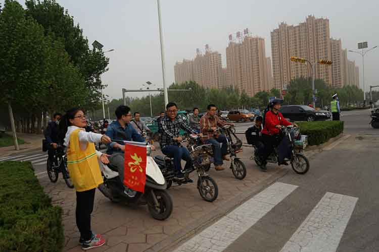 “请您停在白线后等待,谢谢配合。”“大爷,绿灯还没亮,请不要闯红灯,这样很危险。”5月4日,在东风路广川大道路口,素日里的办公室职工主动走上街头,身穿荧光马甲,手持小红旗,当起了交通志愿者,耐心地劝导行人文明出行。