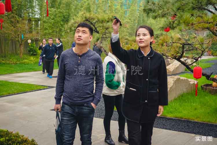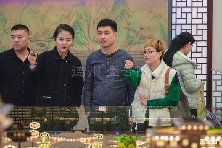 前来选房的客户们,有多半时间都用在了观赏园林上,仅仅是一个示范区,就有着数不清的细节营造,置业顾问们悉心的向客户们解读着这些细节,从入门之处的雌雄双狮护卫,到售楼处前印有颜真卿《裴将军诗帖》的镜面水池,从每一个样板院落的门匾命名,到院落之中的一花一枝,一草一木。热爱中国山水画文的客户刘先生对此赞不绝口,他说,感觉德州壹号院的每一处小景都是一幅画作,未来肯定会邀请自己的同好之友到这里来玩赏作画,不负这样的优雅景致。