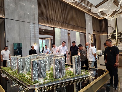 考察团实地参观了项目的景观示范区、精装样板间、艺术车库、业主服务中心等核心功能区域,对各区域的设计理念、施工工艺及运营细节进行了全面细致的实地调研。在参观过程中,考察团成员认真观察、详细询问,对项目的品质把控和服务体系给予了高度评价。