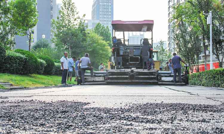 近日,天玉铭城一条条平整的彩色高档沥青路面配以高档路沿石正在紧张施工中,即将交付使用,平整的路面延伸到各家各户门前,瞬间提升小区档次。