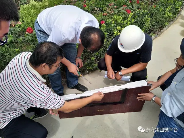 东海·福满园招标使用的入户门,货物进场安装前,邀请业主代表及质检部门,采取中间锯开破坏式现场抽检,赢得业主高度信赖。