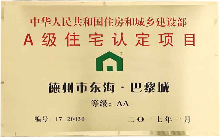 东海·巴黎城,是德州首个荣获国家行业最高奖“广厦奖”和2A级住宅小区项目;