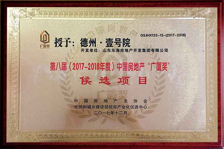 德州壹号院,荣获国家行业最高奖“广厦奖”提名奖。