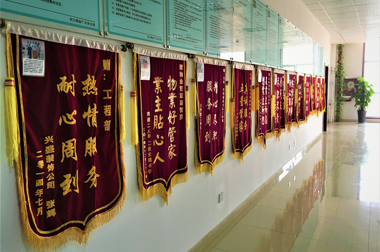 凡是有长江物业服务的小区,都有一面锦旗墙,一面锦旗。一个故事,背后隐藏着长江物业人与上万名业主之间真挚的感人故事,凝聚着业主的感激和对物业工作的认可。
