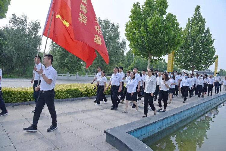 “我志愿加入中国共产党,拥护党的纲领,遵守党的章程……”这是东海集团百余名党员庄严面向党旗重温入党誓词的一个场景。为庆祝建党99周年,丰富党日活动内容,深化“不忘初心牢记使命”主题教育,6月28日上午,东海集团党委组织百余名党员赴乐陵冀鲁边区革命纪念馆开展“传承英烈精神,践行初心使命”主题党日活动,让全体党员接受革命传统和爱国主义教育,深切缅怀革命先烈丰功伟绩,进一步增强了党员的荣誉感和责任感。