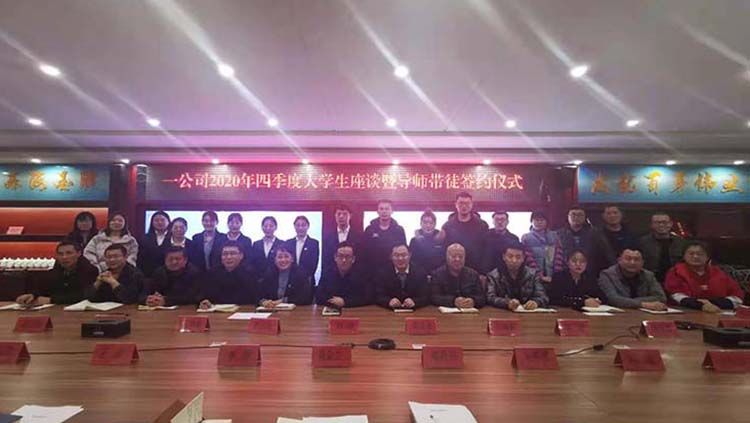 为加强见习生培养,做好“传帮带”工作, 12月3日, 四公司举行2020届商务见习生导师带徒签约仪式。